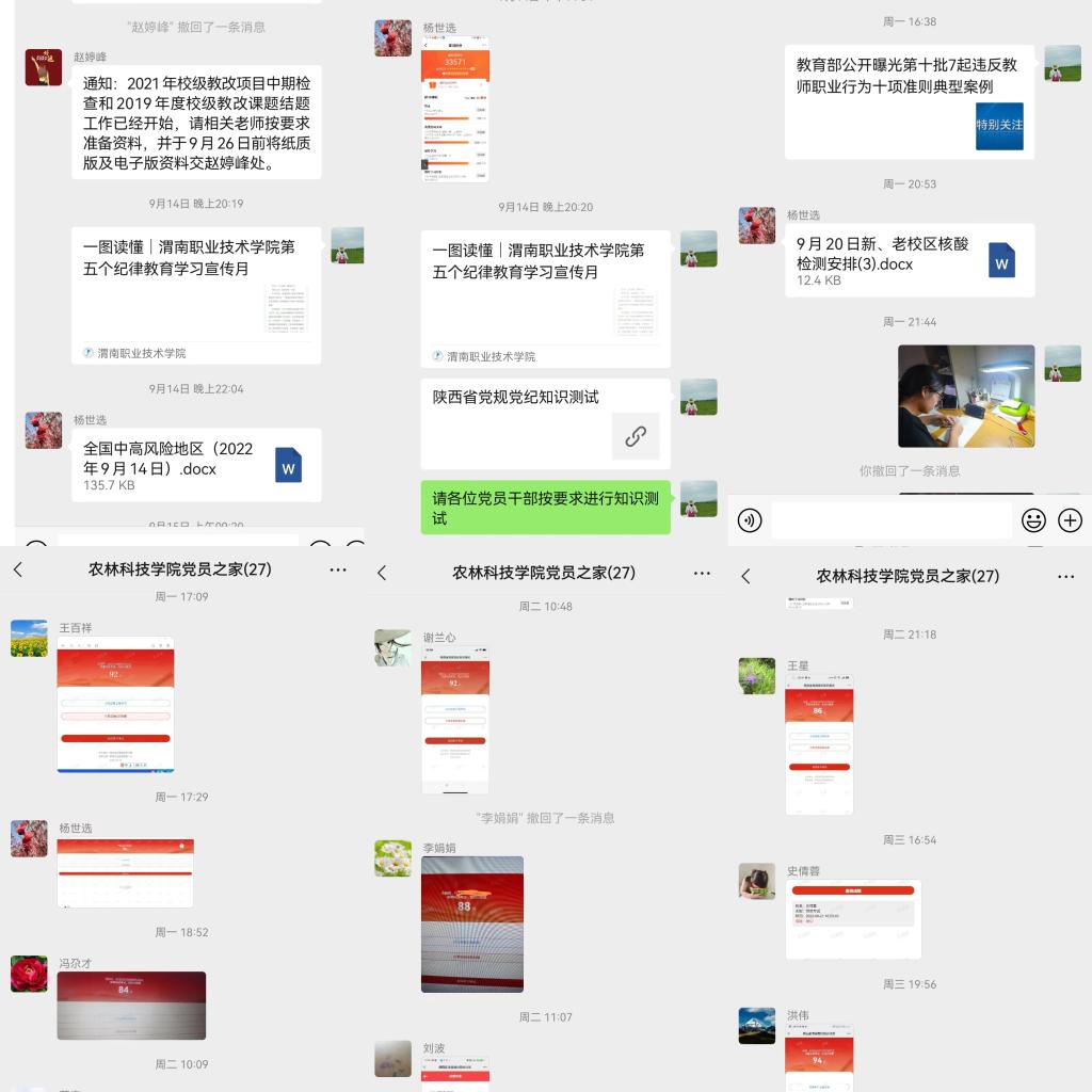 开展党规党纪知识测试。广泛动员、积极开展党规党纪知识测试。大家将个人自学和集体学习相结合,以多种多样的方式研读重点篇目并参加测试,全面领会纪律教育知识,均取得良好成绩。