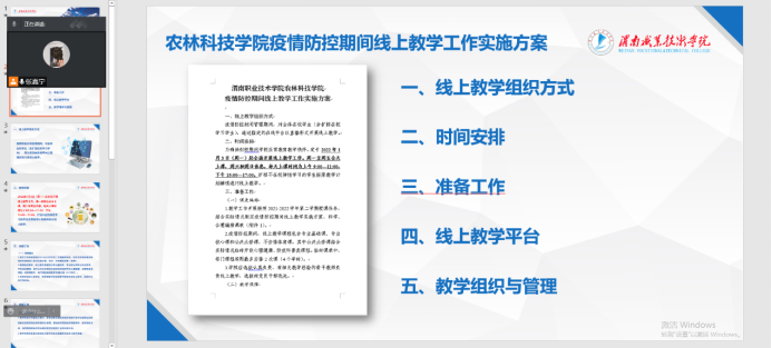 会上,张嘉宁从线上教学组织方式、时间安排、准备工作、线上教学平台、教学组织与管理等五方面对线上教学工作的实施做了详细说明。