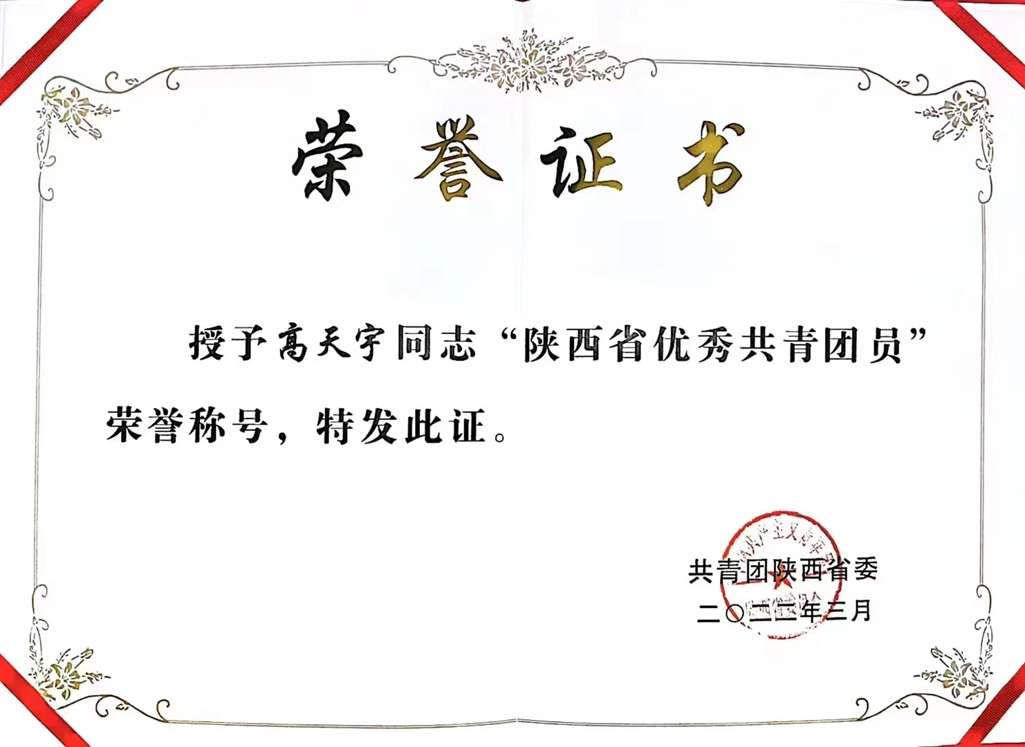 畜牧五高1801班高天宇同学被共青团陕西省委授予 “陕西省优秀共青团员”荣誉称号。4月27日,在公司举办的“五四”表彰大会上,best365团总支荣获五四红旗团总支;综合高职2101班、宠物养护2001班、畜牧五高2102班荣获五四红旗团支部;吕思卓、王嘉乐等同学分别荣获优秀团员、优秀团干部、优秀青年志愿者等荣誉。