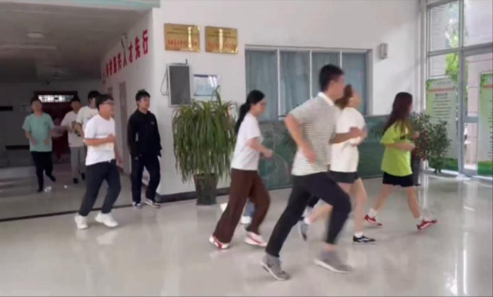 本次演练共分为险情发生、安全撤离、紧急集合三个部分。上午10时,信号员发出第一次警报,员工们在教室内寻找掩体,抱头下蹲,蜷缩于课桌之下。一分钟后第二次报警响起,各班班长按照规划路线指挥各班迅速安全疏散。员工们在演练中有序撤离,快速安全到达指定集合地点并及时清点人数,上报辅导员老师,整个过程井然有序,人人各尽其责。