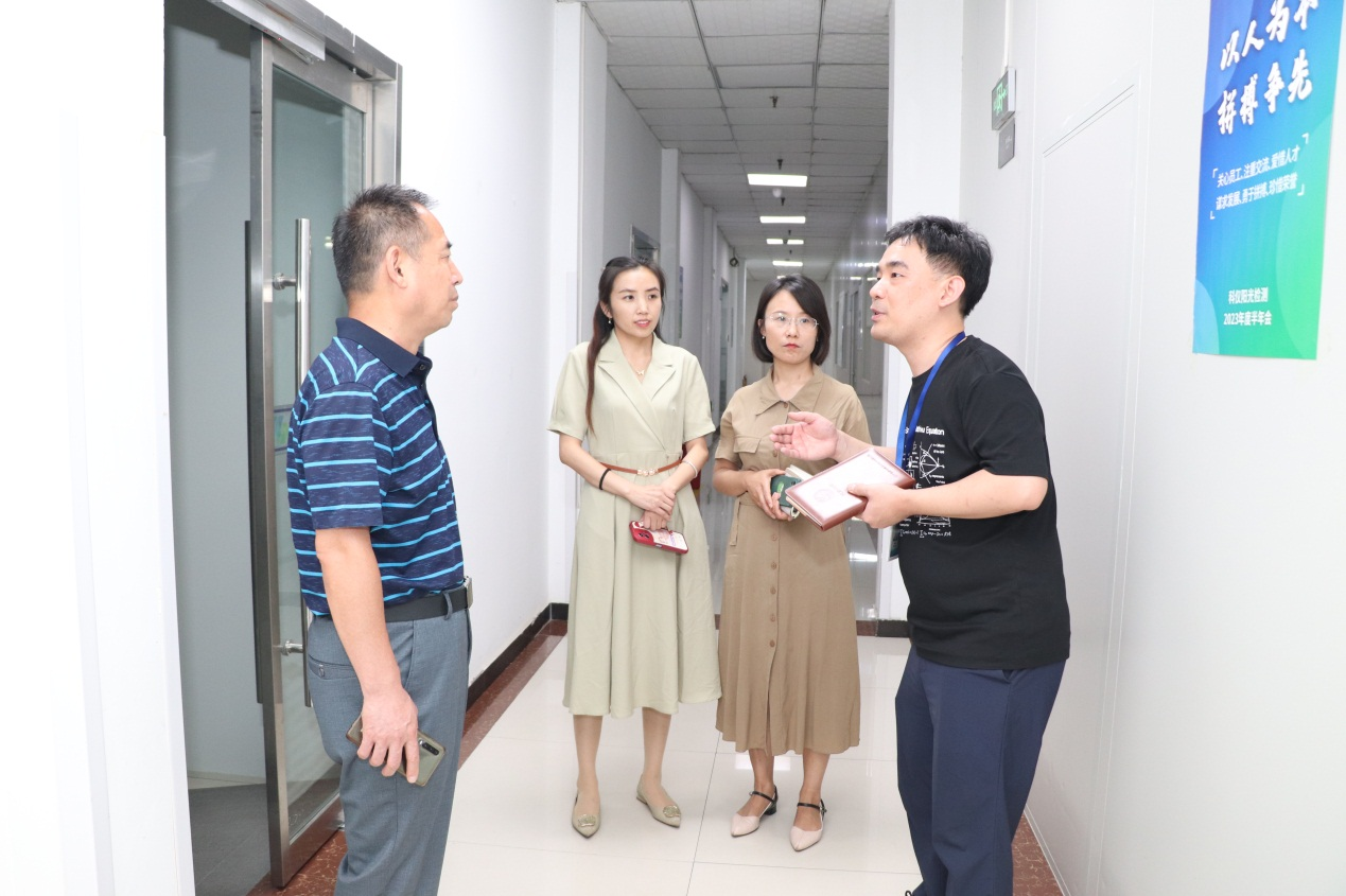 在候国锋的带领下,杨世选等分别参观了气质室、液质室、光谱室、气相色谱室、液相色谱室、ICP-MS室、理化室、微生物室等实验室,他对实验室建设、人员配备、设备配置及检验操作等进行全面而又详细的讲解。