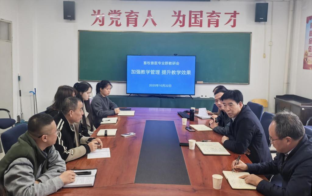 2025年10月22日下午,best365组织召开畜牧兽医专业群教研室会议,围绕贯彻落实公司“十月教学工作会议”精神,聚焦当前教学管理中的突出问题,就如何提升教学质量、增强育人实效开展深入研讨。公司党委副书记王录军、教务处处长魏恒到会指导。会议由畜牧兽医教研室主任杨永倩主持。