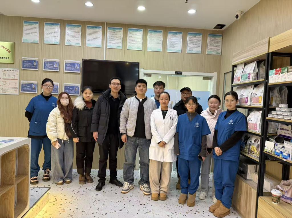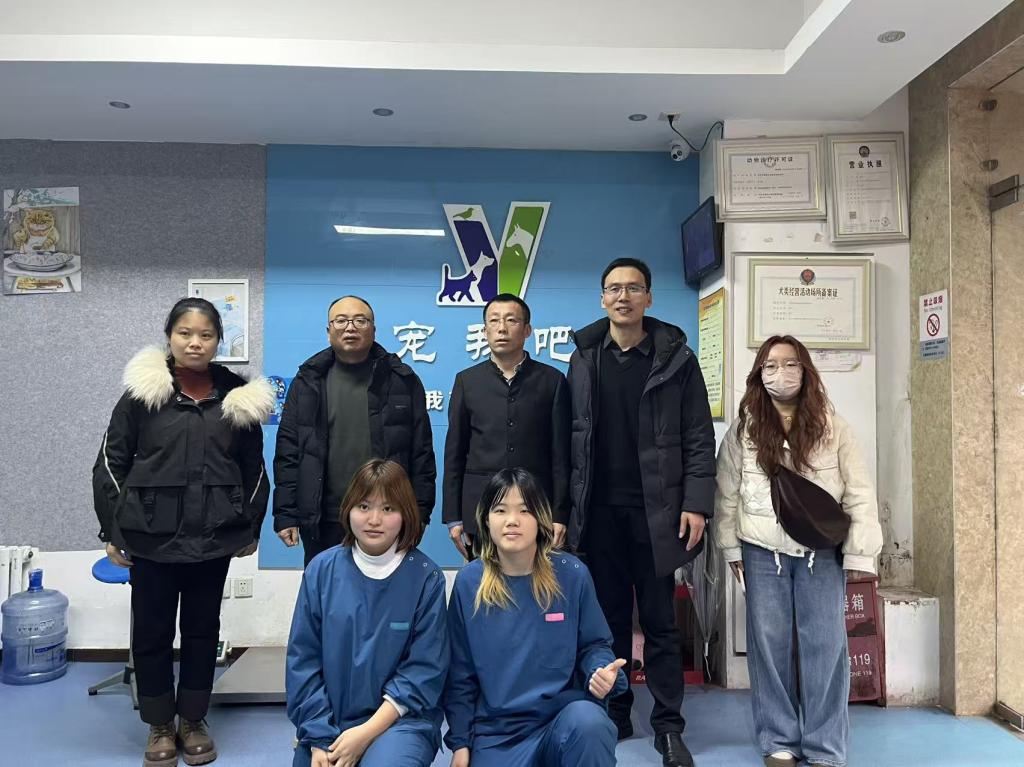 在宠我吧动物医院,魏恒与医院经理张锐就员工实习管理、岗位能力要求等内容进行了座谈,并看望了正在该院实习的两名员工。张锐介绍了实习员工的表现情况,并对公司人才培养质量给予积极评价。魏恒强调,实习是员工从理论走向实践的关键环节,公司将持续强化与企业的协同管理,完善实习评价与反馈机制,助力员工提升专业技能与职业素养,实现从校园到职场的平稳过渡。