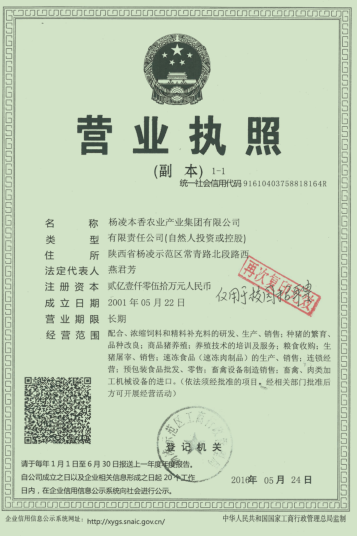 杨凌本香农业产业集团有限公司是国家级农业产业化重点龙头企业,全国百强养殖企业,陕西省高新技术企业。公司总部位于陕西省杨凌示范区,公司法定代表人:燕君芳。